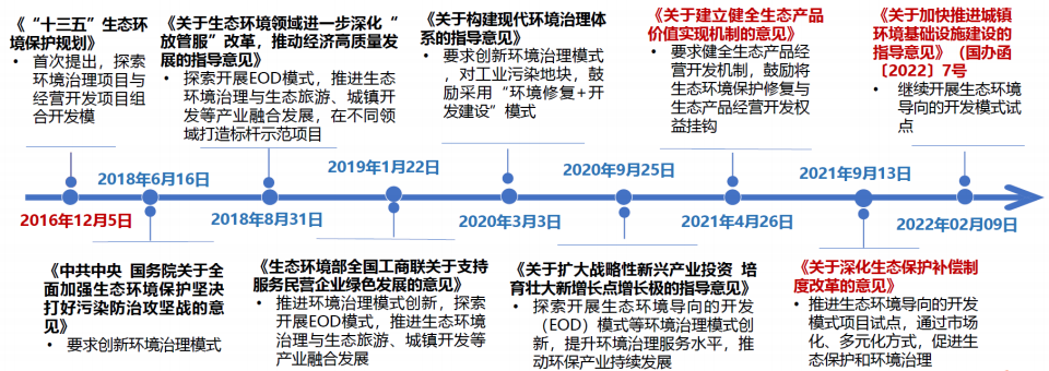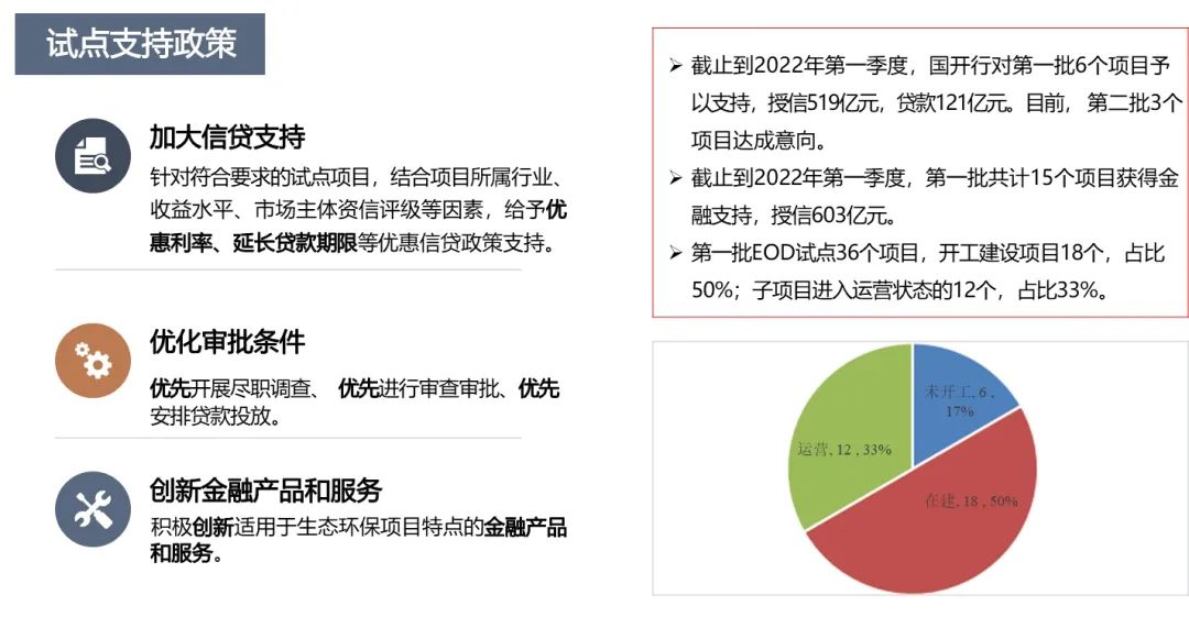 2021年,生態(tài)環(huán)境部批復了第一批36個試點項目,2022年又批復了58個試點項目,接下來,EOD模式試點項目將進入常態(tài)化申報階段。