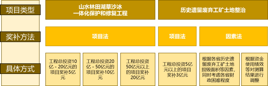 (二)財資環(huán)〔2021〕100號《重點生態(tài)保護修復治理資金管理辦法》中提出治理資金采取項目法和因素法相結合的方式分配: