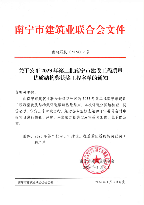 近日,南寧市建筑業(yè)聯(lián)合會(huì)公布獲獎(jiǎng)名單